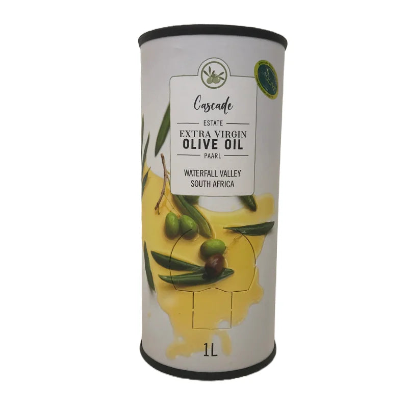 Cascade Extra Virgin Olive Oil—a 1-liter bag-in-a-box captures the essence of South Africa's Waterfall Valley, nestled between the fynbos-covered slopes and a cascading waterfall. This premium olive oil is predominantly crafted from Frantoio olives harvested from century-old groves.